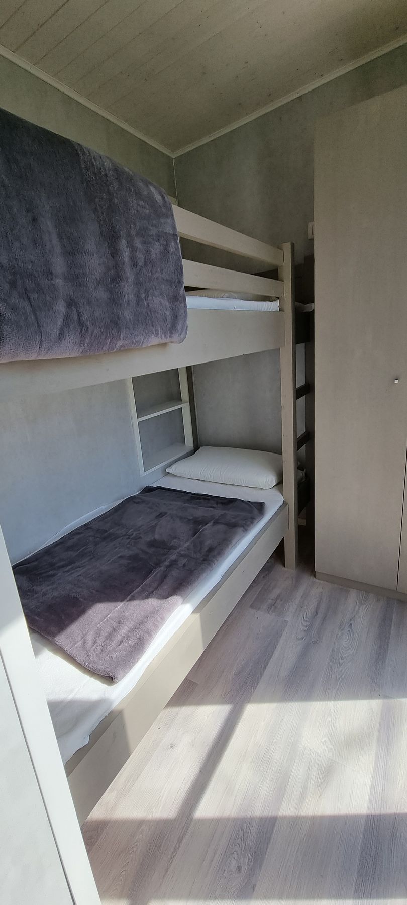 La camera da letto principale ha un letto di 1,60 di larghezza. La camera dei bambini ha un letto a castello largo 90 cm. Se lo si desidera, una brandina aggiuntiva con materasso. Spazio sufficiente nell'armadio in entrambe le stanze.