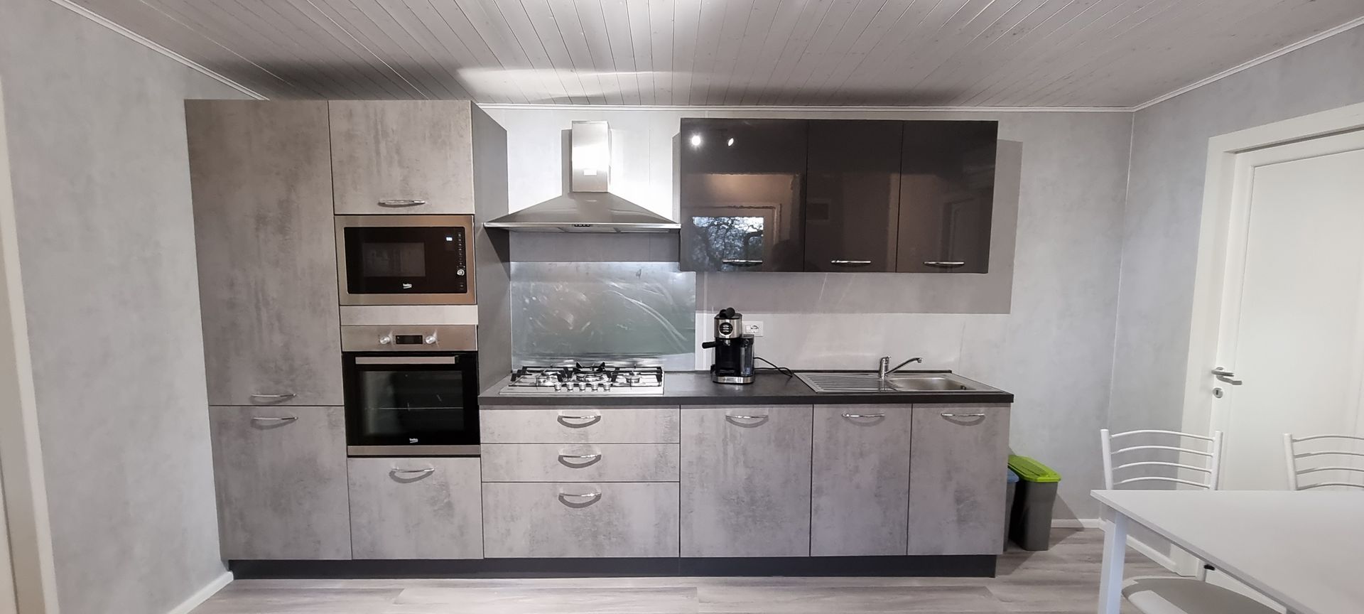 La moderna cucina è dotata di frigorifero, congelatore, forno, microonde, piano cottura a gas a 5 fuochi con cappa aspirante e lavastoviglie. Inoltre bollitore e macchina da caffè a pistone.