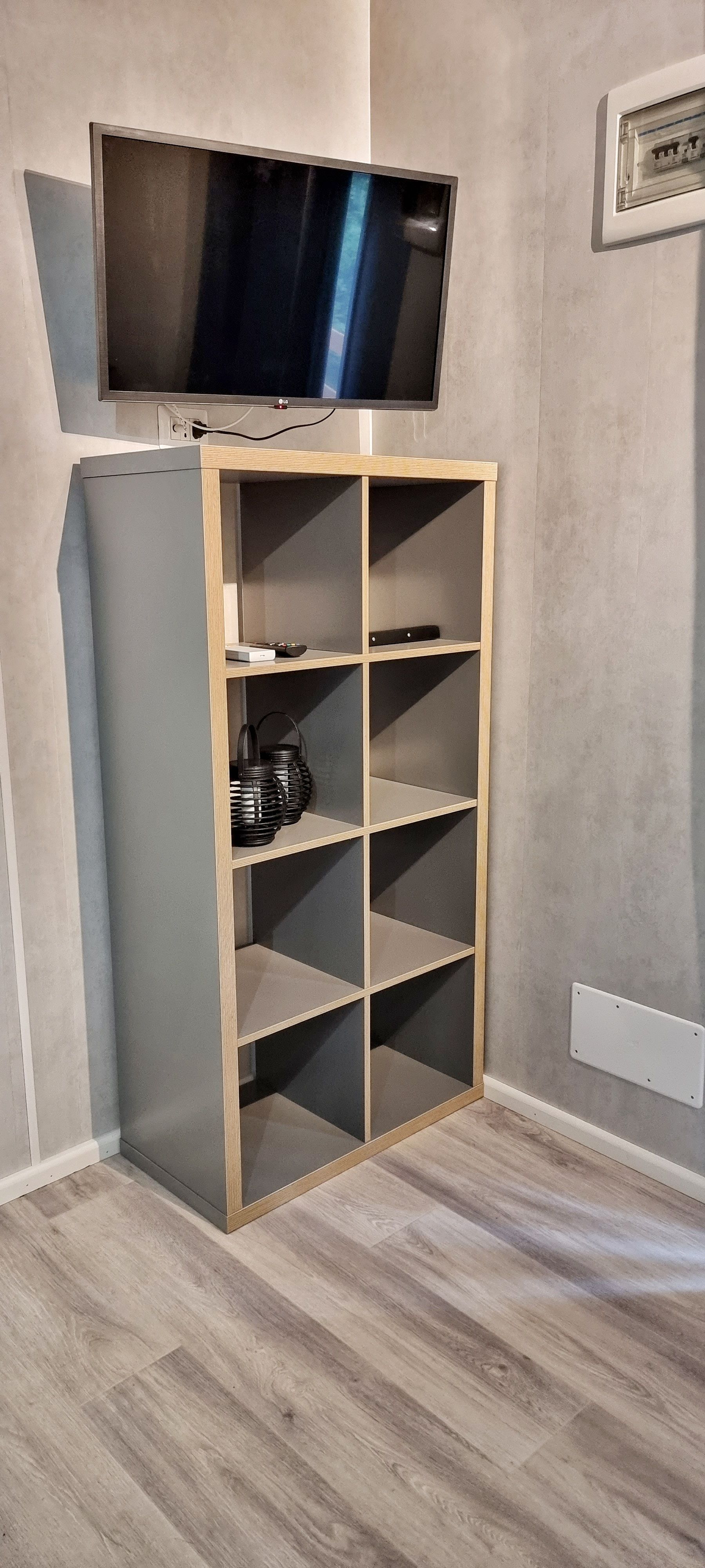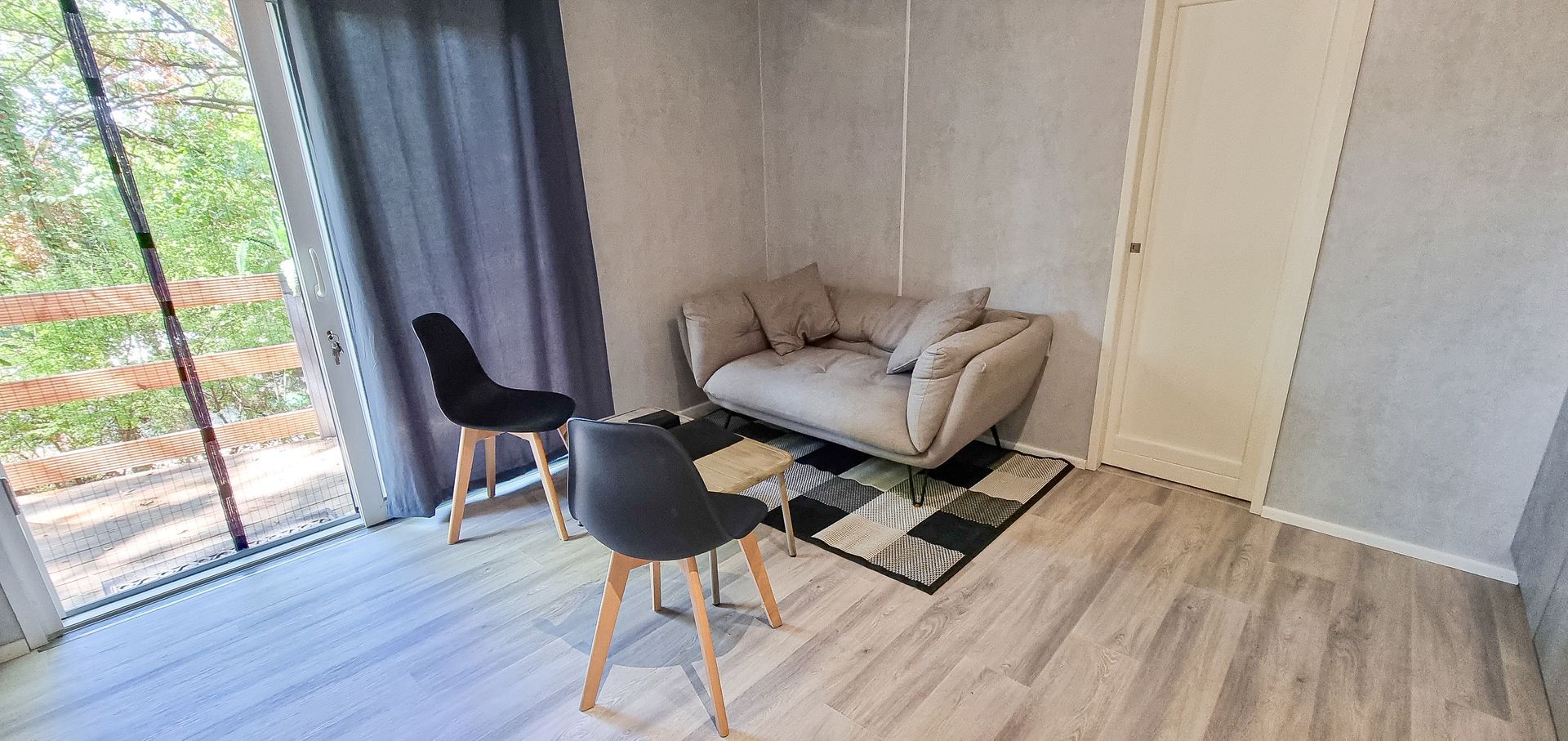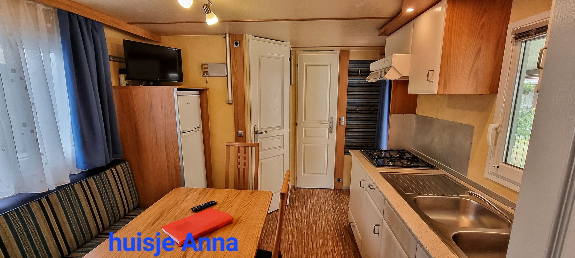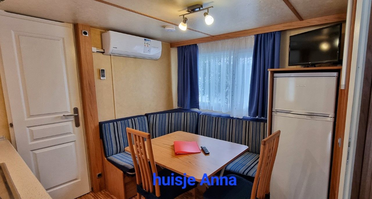 C'è un soggiorno/cucina con aria condizionata/riscaldamento. C'è un divano a 2 posti con 2 sedie separate. Un tavolo da pranzo con 4 sedie. Il tavolo è allungabile. Un armadio con scomparti per riporre tutte le tue cose. Aria condizionata e riscaldamento. TV. Aspirapolvere a bastone.