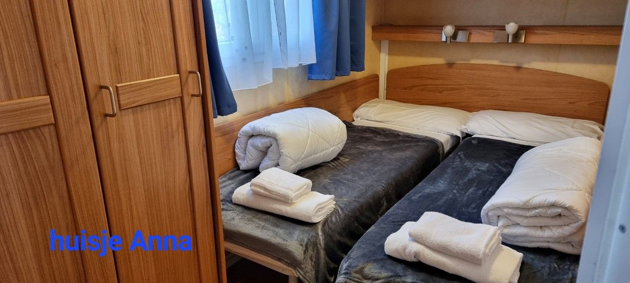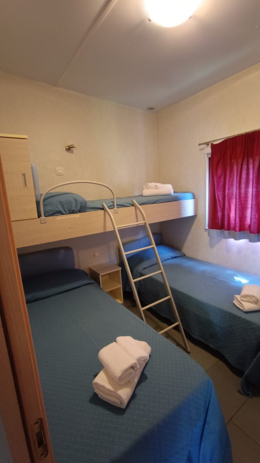 Ci sono 2 camere da letto. Una camera con letto matrimoniale e 2 armadi per riporre vestiti e altri oggetti. E una camera con 3 letti singoli. Anche qui un armadio per i vestiti, ecc.