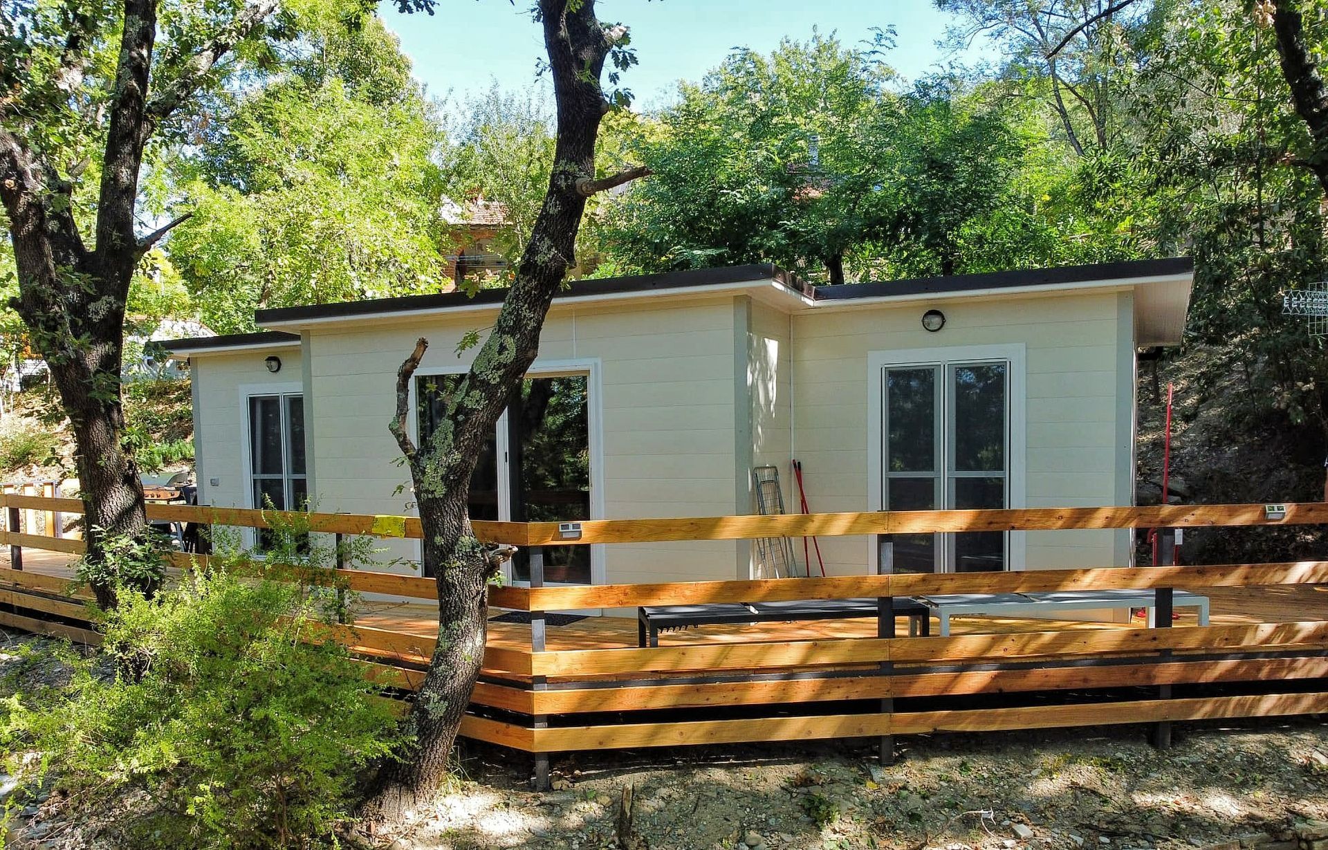 Questo chalet è il più grande e il più nuovo (2022) che abbiamo installato su Ippotur. Lo chalet è di quasi 40 mq e può ospitare 4 persone. È possibile creare un quinto posto letto con una brandina supplementare con materasso. Tutte le finestre sono dotate di zanzariere.