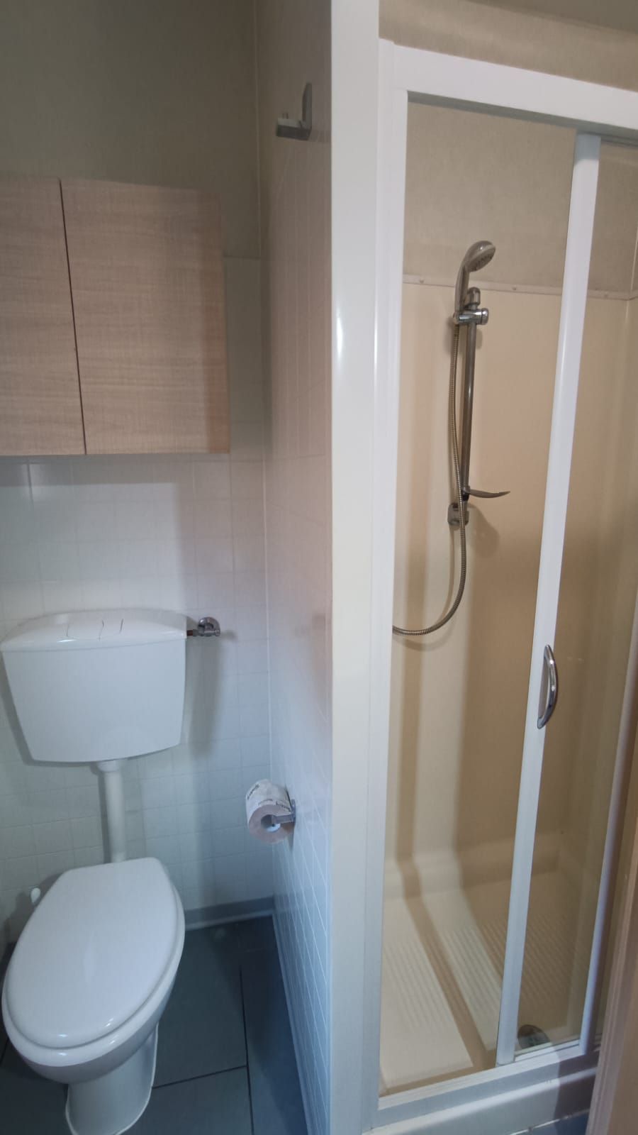 Il bagno è dotato di wc, cabina doccia e lavabo. Spazio sufficiente per tutti gli articoli da bagno e specchio grande .